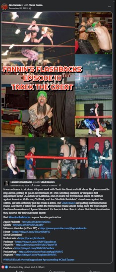Episode 10 of Fannin’s Flashbacks is LIVE! On this episode, Jim sits down with former IWA Mid-South tag team champion and 12x light heavyweight champion, Tarek the Great! What bizarre series of events led to Tarek being in the very first match ever on an IWA Mid South show? Hear Tarek’s perspective on his feud with American Kickboxer. How did Tarek end up taking multiple tours of FMW? What was it like being one of the only ones working IWA Mid South and OVW at the same time? What was it like working against Ian Rotten in a series of matches affectionately dubbed Methlab Battlearts? All that and more on this week’s episode.